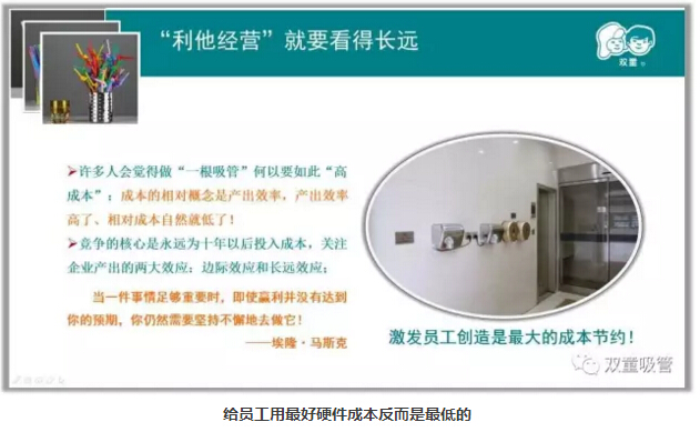 許多媒體在關(guān)注報(bào)道“雙童”時(shí),都會(huì)提到“雙童”的“GMP”食品標(biāo)準(zhǔn)設(shè)計(jì)建造的全封閉清潔車間,講述我們對(duì)生產(chǎn)環(huán)境的高投入和對(duì)員工衛(wèi)生防護(hù)的高要求。實(shí)際上,許多民營(yíng)企業(yè)都不理解,吸管這樣的附屬產(chǎn)品在小作坊也能做,為何“雙童”卻要下如此高成本建設(shè)食品標(biāo)準(zhǔn)的生產(chǎn)車間呢?