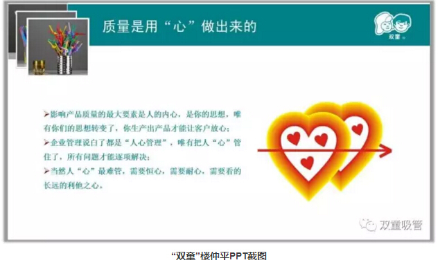 有了如此整潔干凈的生產(chǎn)環(huán)境,“雙童”生產(chǎn)的吸管自然支支見(jiàn)品!如今,“雙童”生產(chǎn)的吸管不僅有著高品質(zhì),還突破了常人對(duì)“吸管”產(chǎn)品的認(rèn)知!就拿愛(ài)心吸管來(lái)說(shuō),由14個(gè)配件組成,安裝有液體止回流裝置,也避免了兩個(gè)人之間的細(xì)菌交叉感染。目前為止,“雙童”擁有了100多項(xiàng)專利,掌握了全球吸管行業(yè)近2/3的專利,并且主導(dǎo)著全球吸管行業(yè)的行業(yè)標(biāo)準(zhǔn)制定。
