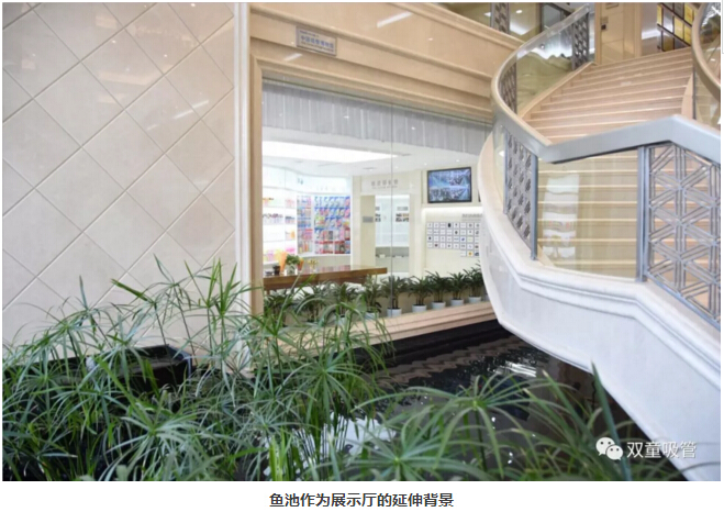 >>> 通過落地玻璃將博物館外側的養(yǎng)魚水景巧妙融合進展示廳,成為一道亮麗風景線;