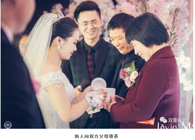 最后,新郎新娘的雙方父母上場共同見證一對新人的幸福。新郎和新娘向父母敬茶改口,全家人一起向全場來賓敬酒,婚禮禮成,一對新人正式進入了婚姻的殿堂!