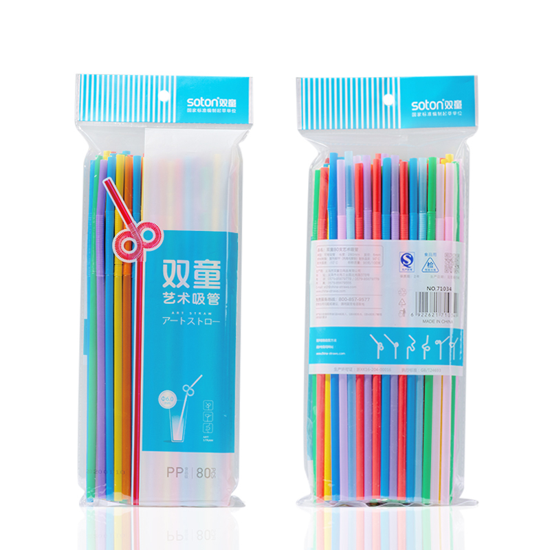 71034Y雙童80支深色熒光八色混裝藝術(shù)吸管